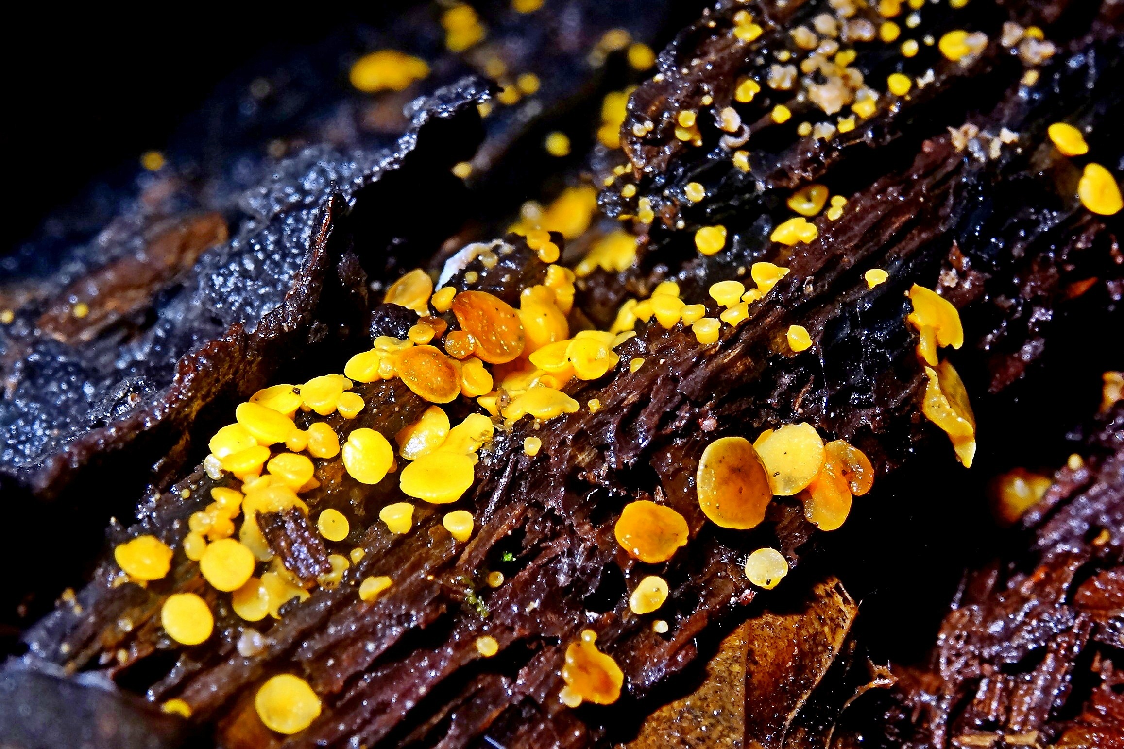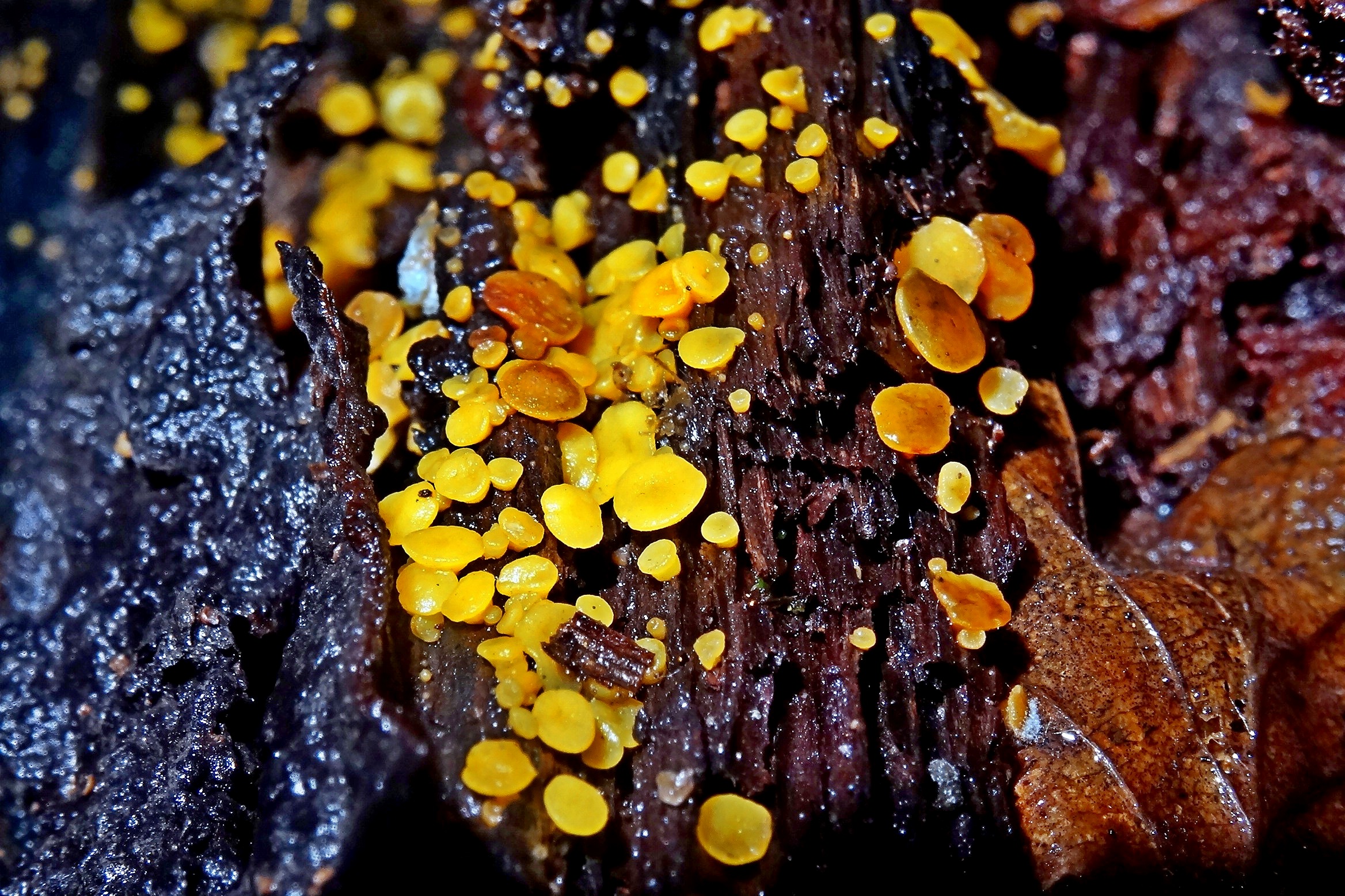 Плодовое тело: 0.2-0.4 (0,8) см в диаметре, сначала сферическое, шаровидное, закрытое, шаровидно-спюснутое, с короткой вытянутой ножкой, обратно грушевидное, желатиново-желтое, похожее на икринку, позже чашеобразное, с беловатым паутинистым пятном на вершине, с неровным отверстием, позднее почти плоское, с ямочкой в середине, желтое, желтовато-оранжевое, розовато-оранжевое, красновато-оранжевое, с беловатым краем, снаружи белооволосистое, светло-желтое у основания зеленоватое.