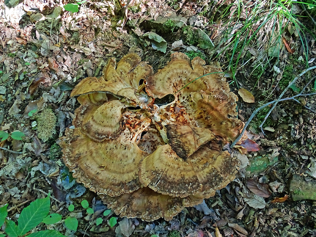 Вот нашла необычный гриб, вначале подумала что гриб-баран, оказалось что это Мерипилус гигантский. Почитать можно ЗДЕСЬ