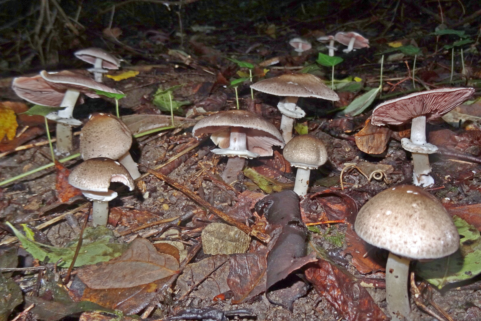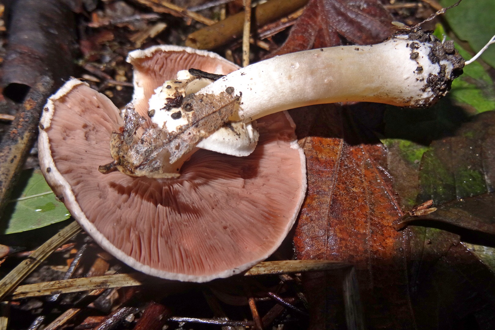 Пластинки розоватые, потом серовато-коричневые